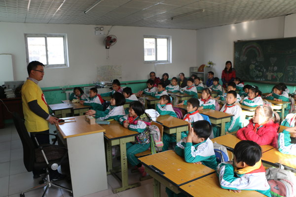 一大早,学雷锋志愿者们在办公楼门口集合,将捐赠给学校的跳绳、象棋跳棋、羽毛球拍、乒乓球拍、毽子等文体用品及洗手液、消毒液等洗涤用品搬上了车,汽车沿着六环外的小路驶进了楼自庄村,到达学校后,正赶上孩子们在做课间操,学校宗校长和教职员工及全体小同学们对学雷锋队的到来表示热烈的欢迎,志愿者们也将带去的文体用品、消毒用品捐赠给了学校。紧接着,大家来到4年级1班,由国家流感中心的陈涛给同学们上了一堂关于流感病毒预防的科普知识讲座,深入浅出的讲解了流感病毒的特点、分类、传播方式及主要预防措施,内容生动、有趣,引起了同学们的极大兴趣。同学们在课堂上十分活跃,不仅积极举手回答问题,而且还提出了很多有趣的问题,志愿者们和同学们进行了热烈的讨论和互动。时间过得很快,不知不觉就下课了,志愿者们和同学们进行了合影留念,并依依不舍的离开了教师。课后,宗校长介绍了学校的历史、师资情况、学生和教职员工的构成等情况,并对病毒病所学雷锋志愿者队表示感谢。