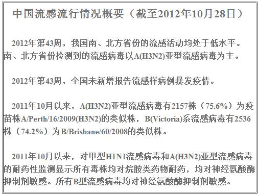 2012年第43周,国家流感中心对109株A(H3N2)亚型流感毒株进行抗原性分析,31株(28.4%)为A/Perth/16/2009的类似株,78(71.6%)为A/Perth/16/2009的低反应株。