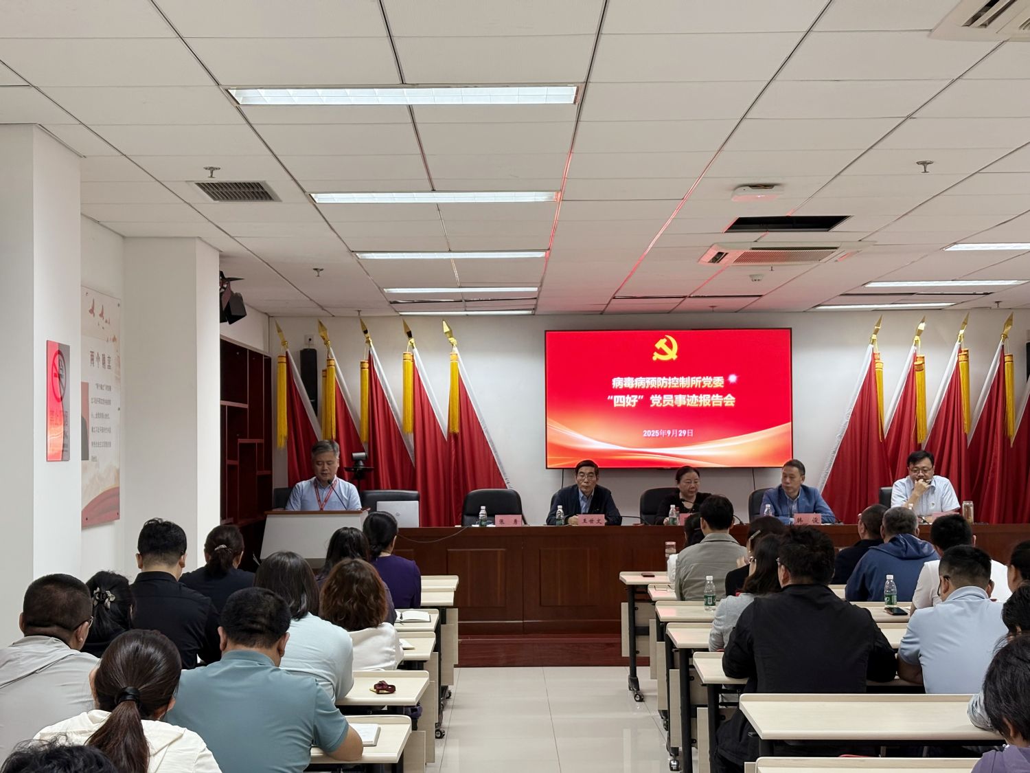 为深入贯彻国家疾控局直属机关党委和中心(院)党委关于开展学习身边“四好”党员榜样活动的部署要求,激发全所党员干部职工干事创业热情,病毒病预防控制所党委于2025年9月29日举办“四好”党员先进事迹报告会。